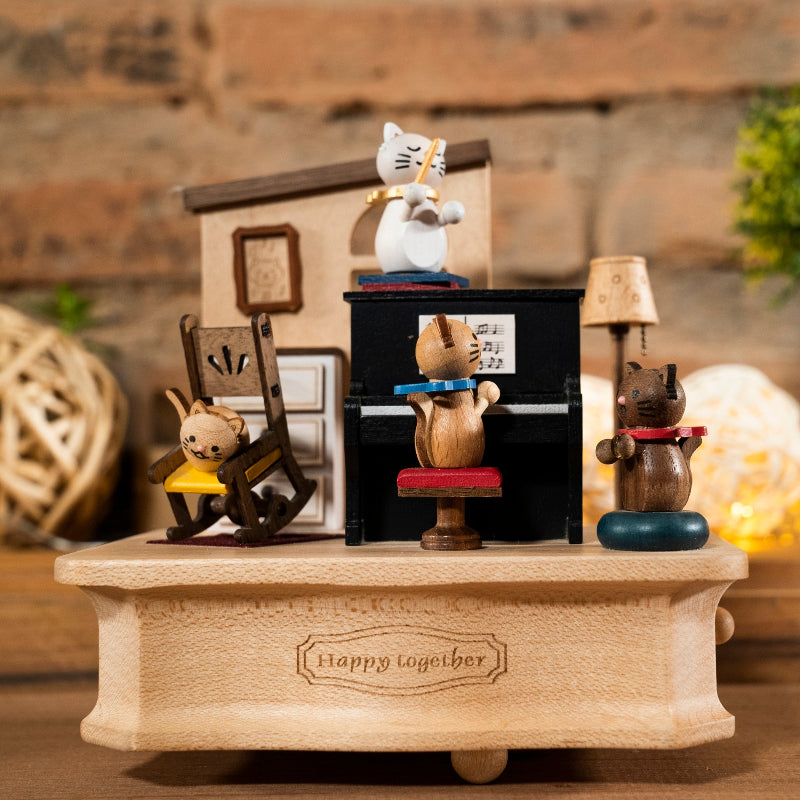 - Kit completo caja musical Wooderful Life (base mediana, mecanismo a a cuerda y 3 figuras DIY a elección del catálogo en vitrina celeste, naranja o amarillo)