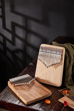 Kalimba de madera con 17 teclas de acero. Es completamente lisa para que puedas personalizarla tú mismo, grabándola o pintándola.