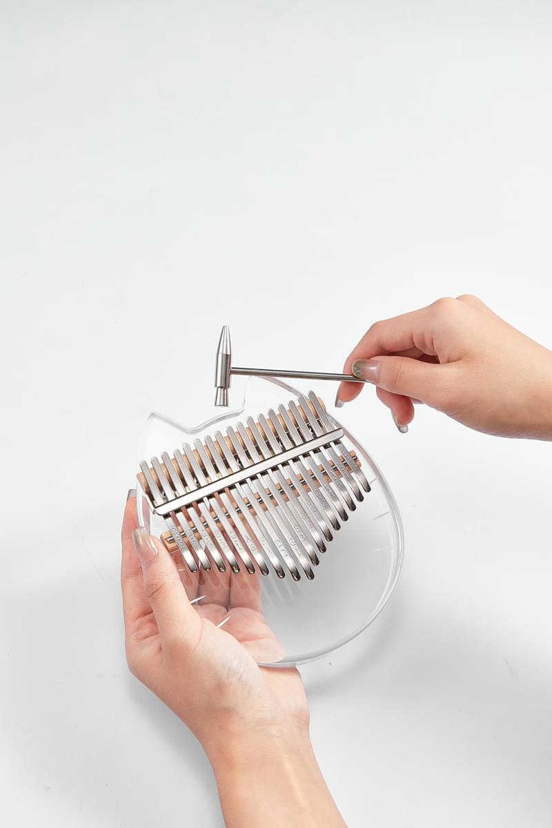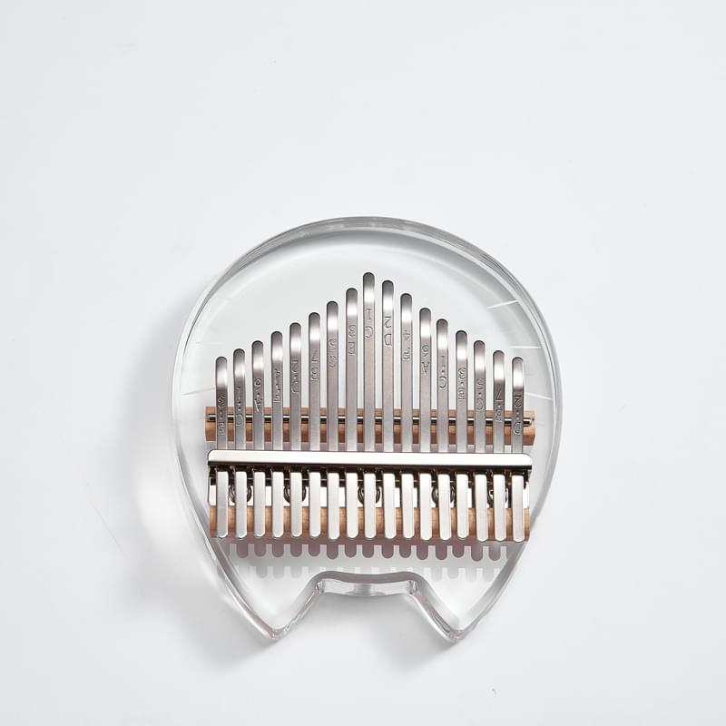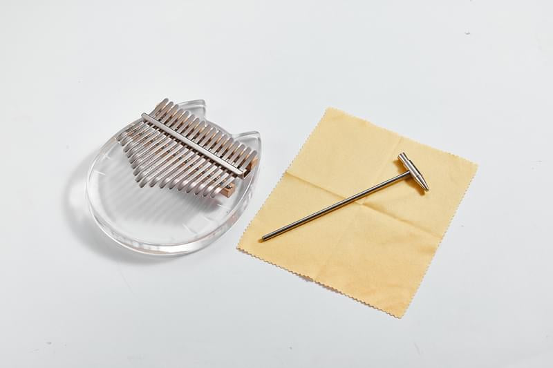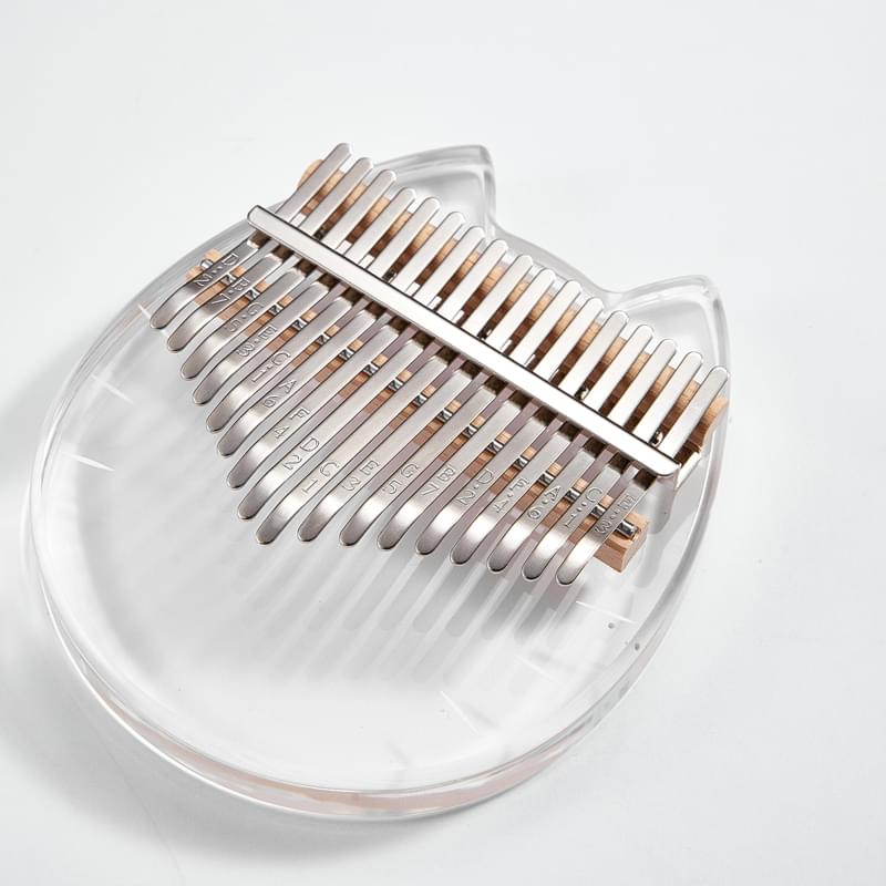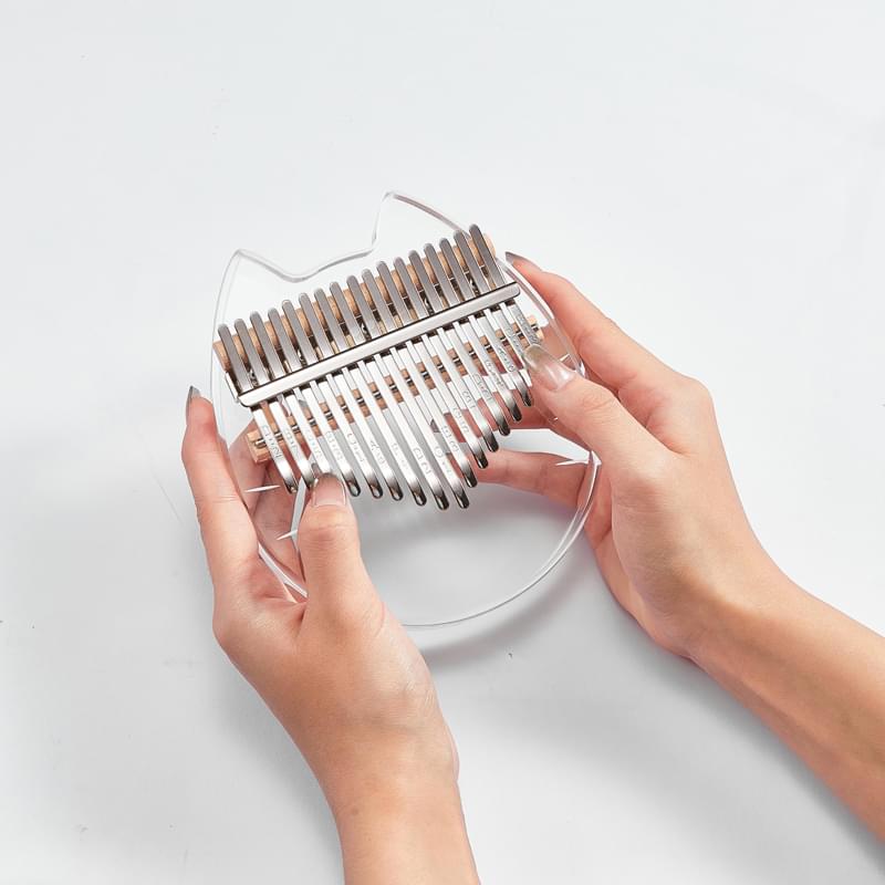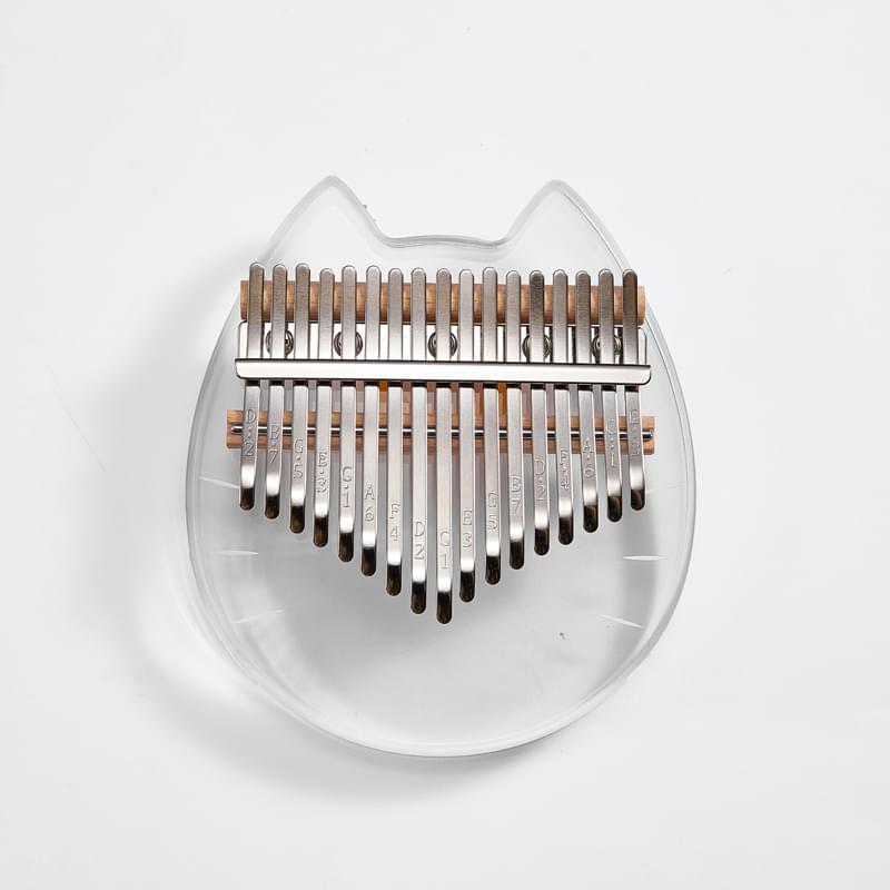 Kalimba acrílica transparente con forma de gato con 17 teclas de acero.